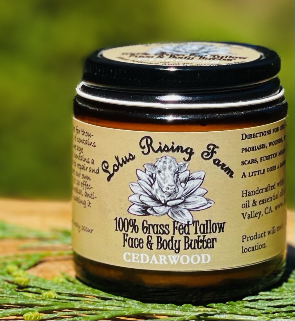 Ingredients: 100% grass fed tallow, avocado oil, essential oil of cedarwood.