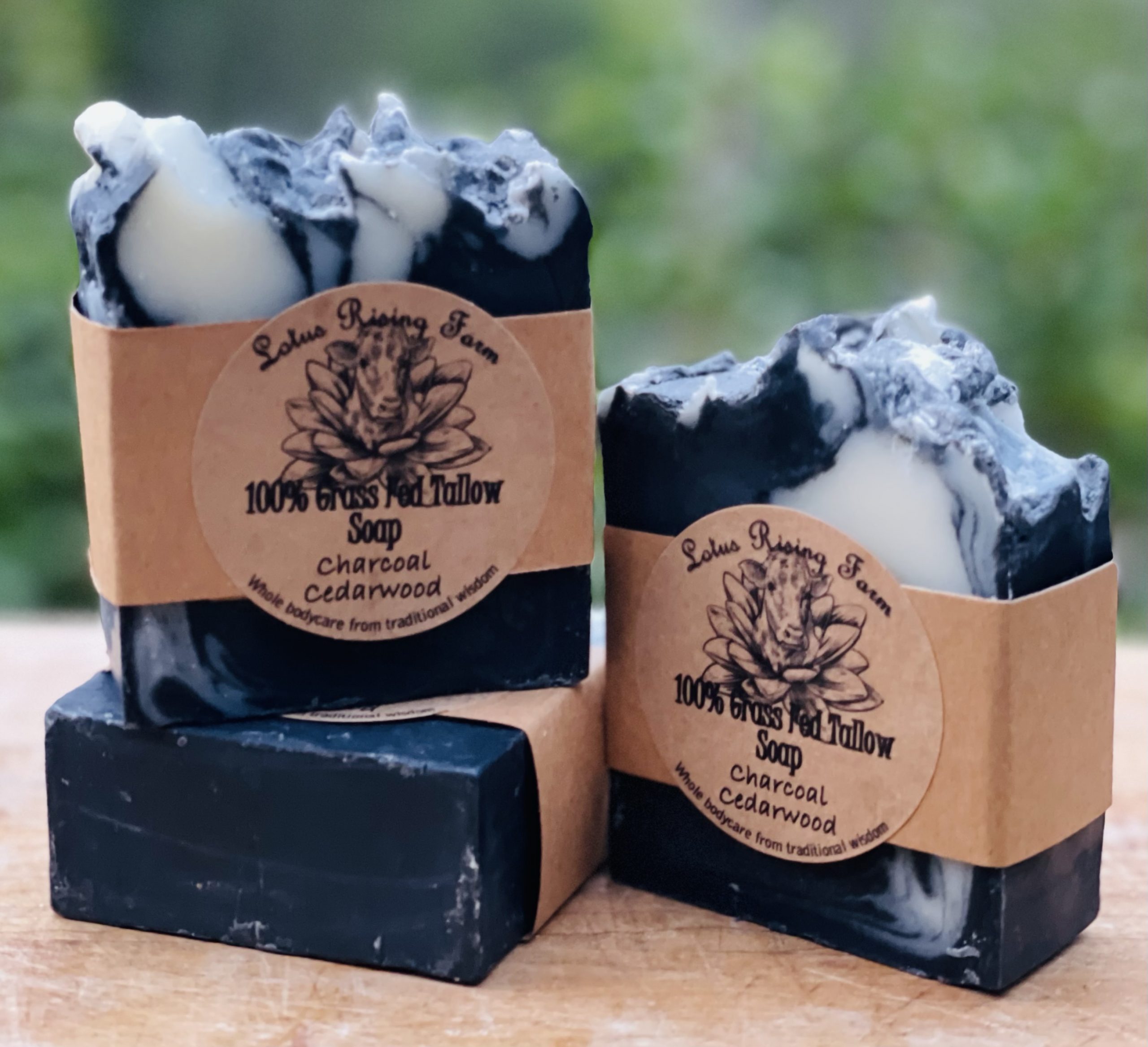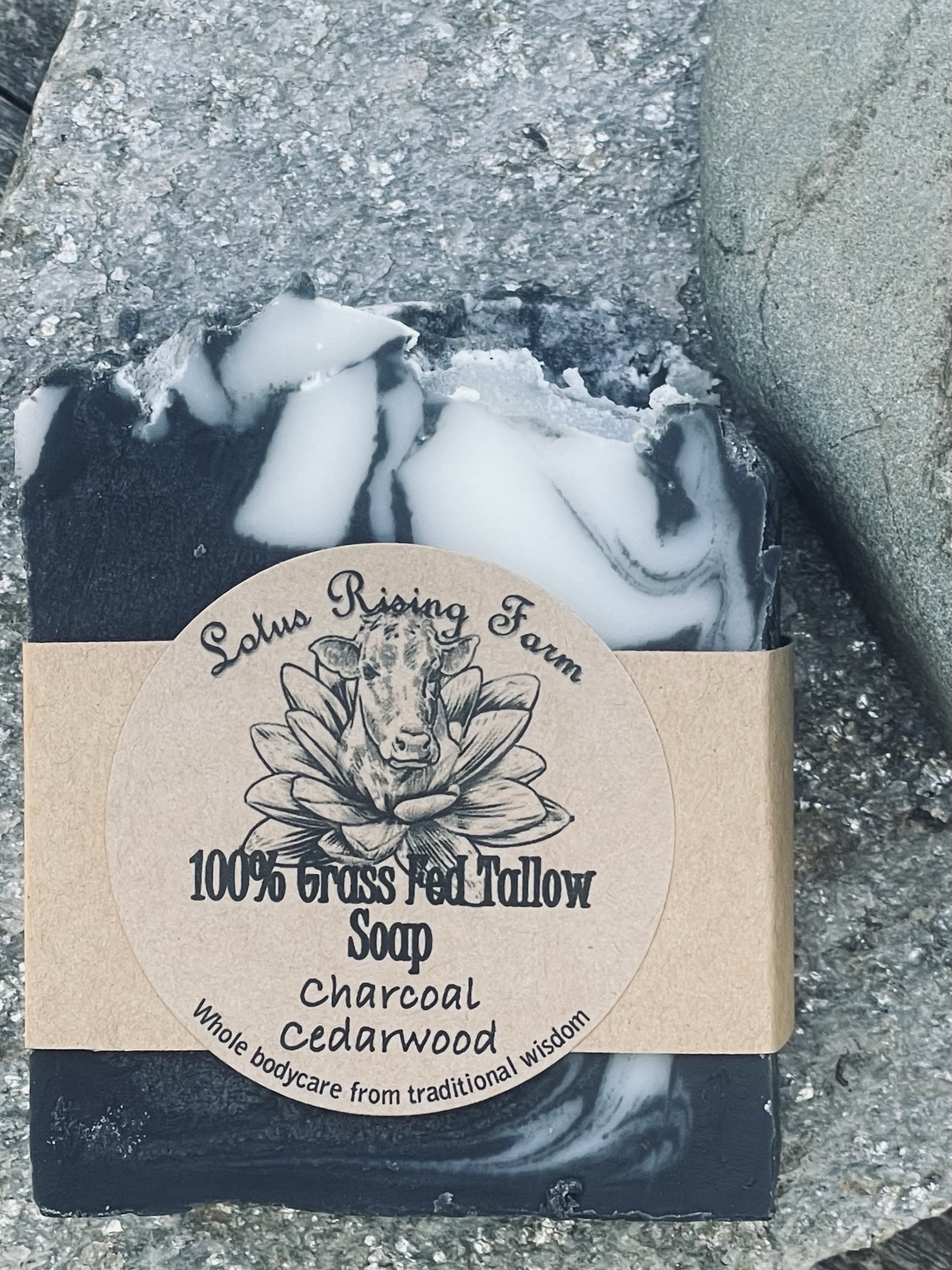 Charcoal has been said to have a purifying quality on the skin helping to aid in the treatment of acne while also brightening and soothing redness and inflammation. It also acts as a gentle exfoliant. This soap combines all the amazing qualities of tallow combined with charcoal and gently scented with essential oils of Cedarwood and Frankincense.